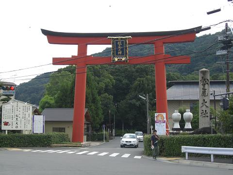 | 四条通の西の「どんつき」。桂川にかかる「松尾橋」をわたるとまず大きな鳥居があります。 | ここからが、参道です。鳥居にかかっているのは「脇勧請」という、榊の枝を束ねたものです。これは、鳥居の原始系らしいです。榊の束は「十二(閏年は十三)」かかっており。農作物の出来具合を占った太古の風習だそうです。しかし詳しい資料が残っておらず、どのようにして占っていたのかは今はわからないそうです。 | |