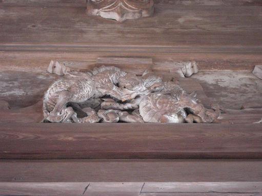| 閼伽井屋の上には左甚五郎作の龍があります。この龍は夜な夜なここを抜け出し、琵琶湖にいって悪さをするので甚五郎自ら龍の目に釘を刺したという話が残っています。 | 一番奥のところで水か「ポコン」って湧き出ているのが見えますか?今も、水が枯れることなく湧き出ています。 |